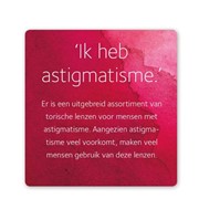 Ik heb astigmatisme; dit betekent dat mijn zicht wazig kan zijn op alle afstanden. Mijn lenzen hebben een cylinder/ torische sterkte.
